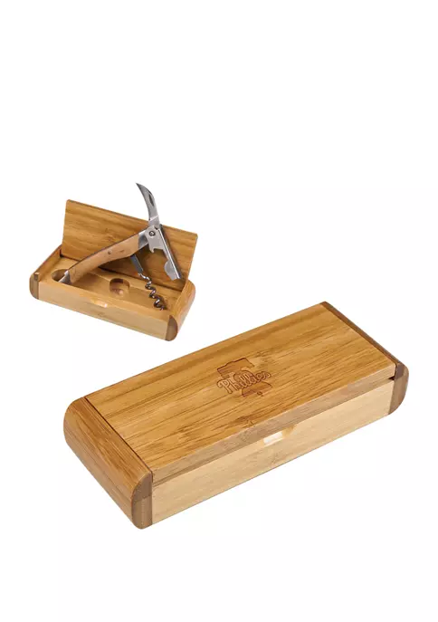 - Includes hinged wooden box and stainless steel waiter-style corkscrew with bamboo handle